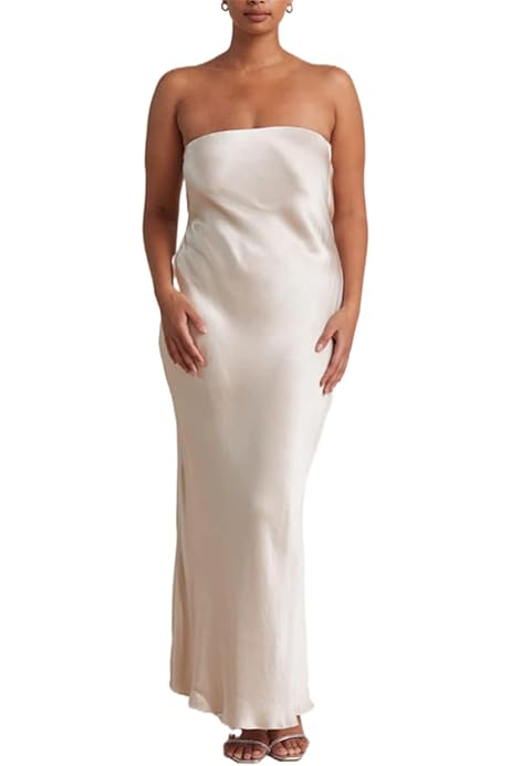 Amazon Com Elegant Satin Long Maxi Dress For Women Sexy Bodycon Strapless Tube Dress Low Cut Evening Cocktail Night Party Dress Solid Silk Summer Wear Clothing Shoes Jewelry