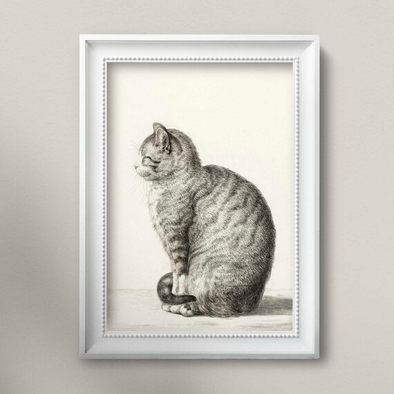 Sitting Cat Vintage Pet Portrait Animal Sketch By Jean Etsy